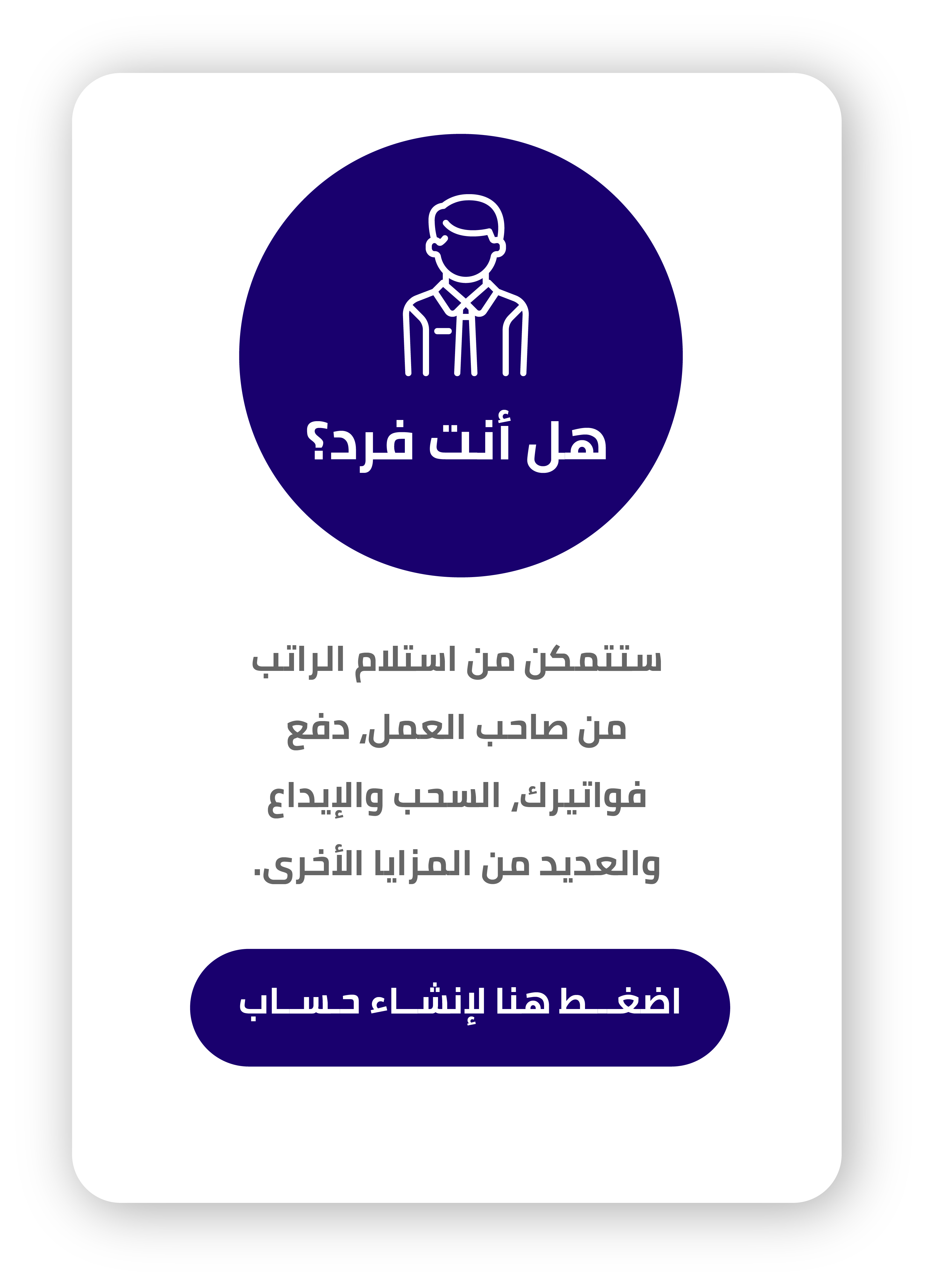 توفر محفظة MEPS الوطنية للعملاء من الشركات والمؤسسات جميع أنواع الخدمات المالية لتلبية احتياجاتهم، بما فيها صرف الرواتب واصدار بطاقات دفع الكتروني مرتبطة بالمحفظة وصرف القروض الصغيرة والمتوسطة من شركات التمويل الأصغر. ويمكّن نظام المحفظة الوطنية جميع المؤسسات من الحصول على تصميهم الخاص بهم أو طلب خدمات معينة من التطبيق لتناسب احتياجاتهم بكل سهولة وأمان. تعد المحفظة الوطنية من MEPS مناسبة لجميع المؤسسات والشركات بمختلف احجامها والتي تتطلع إلى تعزيز قدراتها المالية.